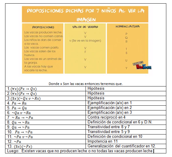 www.youtube.com/watch?v=zAubs7iqYYg), donde observamos la imagen y a través de ese analisis los niños daban inferencias, construimos un sistema cuantificador, donde utilizaremos herramientas tanto de esta rama como la de la estructura proposicional.